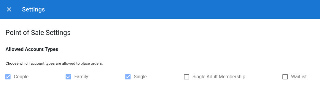 It was previously using the same allowed account types as the front desk check-in. That’s now split into its own settings (from the main POS screen click on Settings at the top left). By default it allows all account types. If you select any it will restrict the results to those.